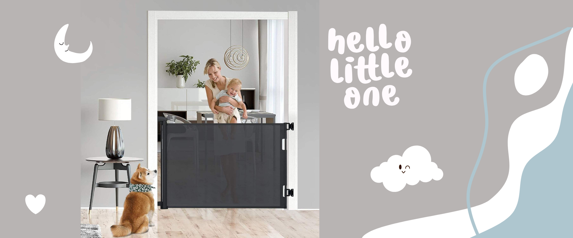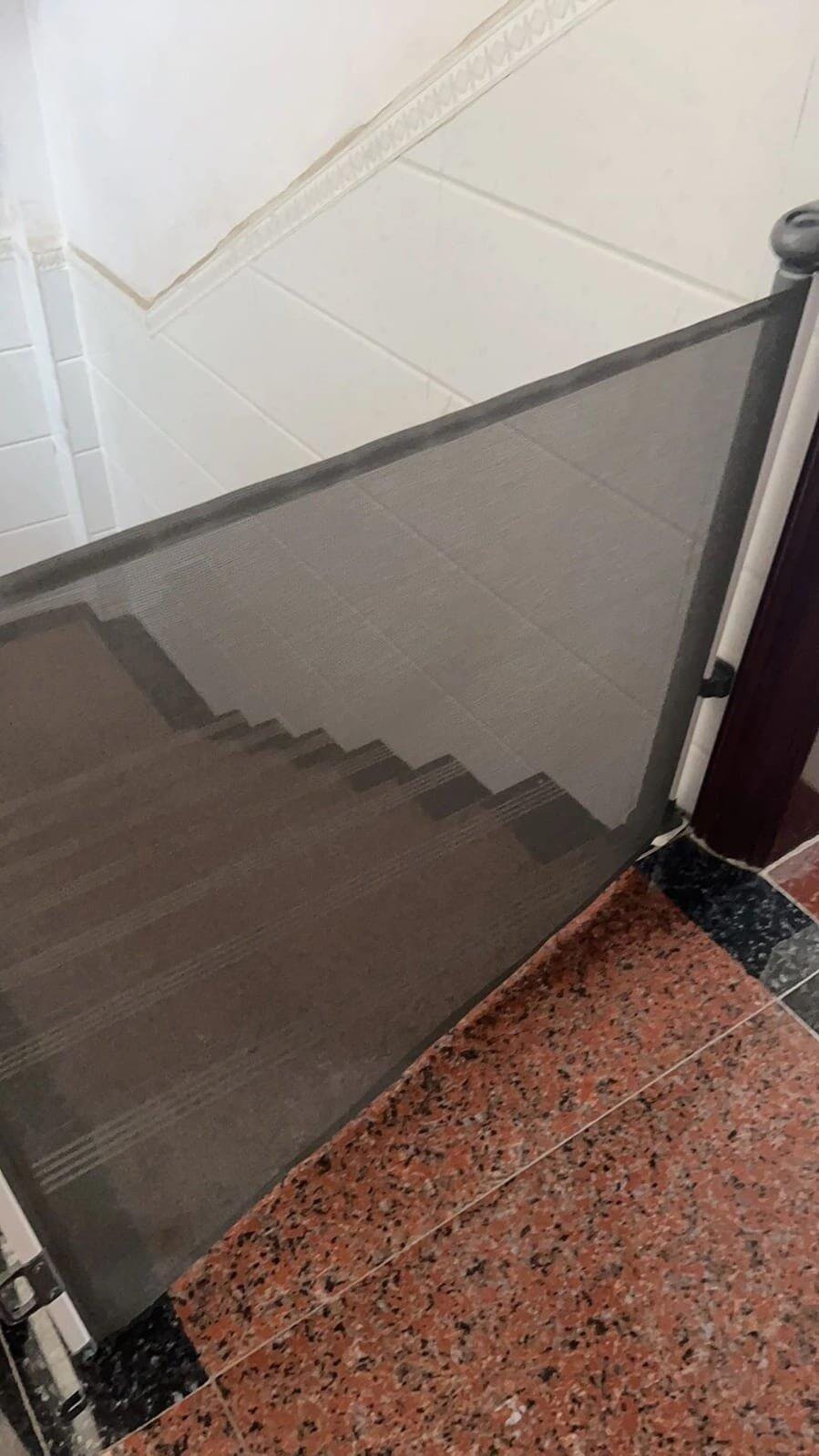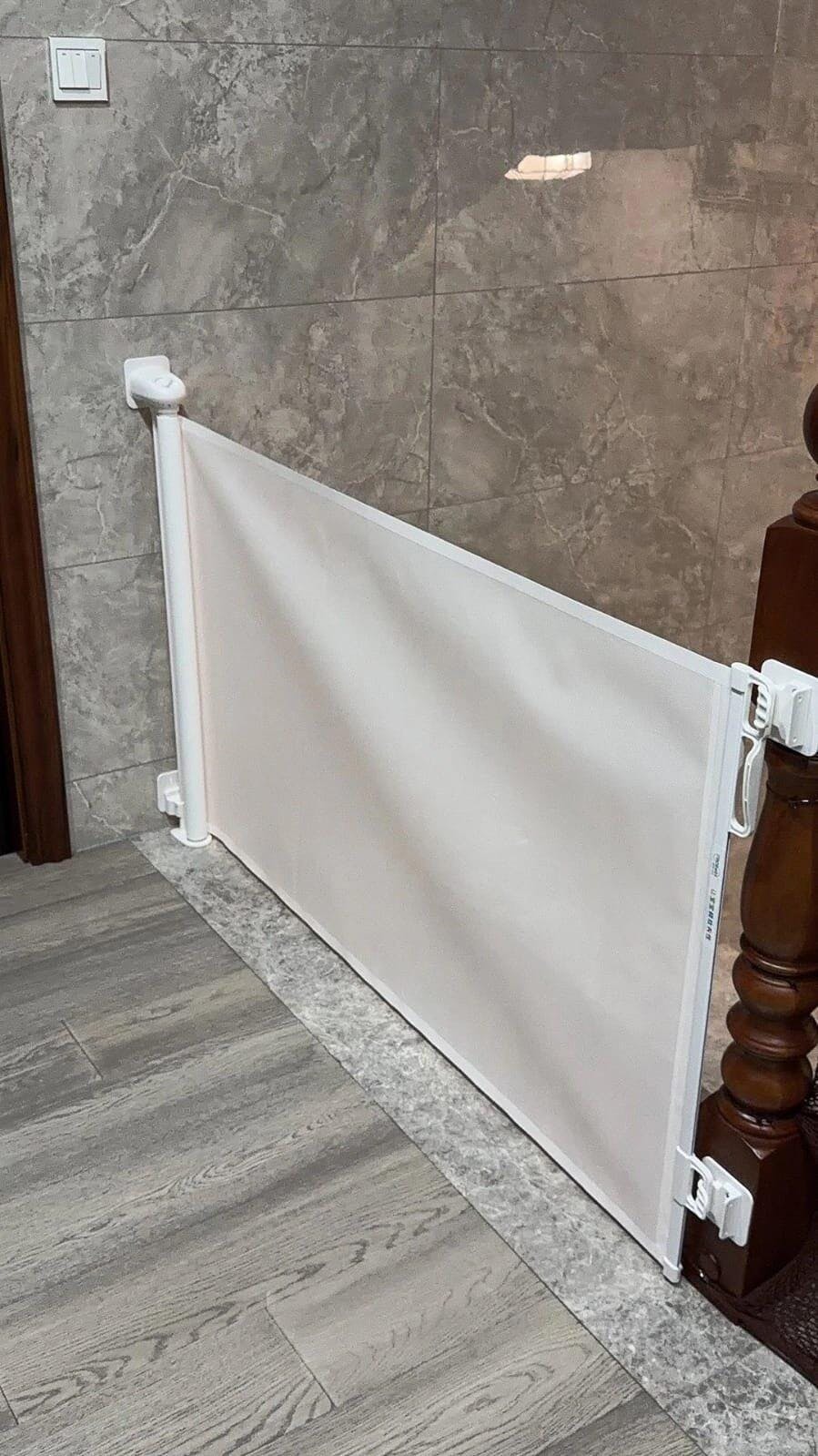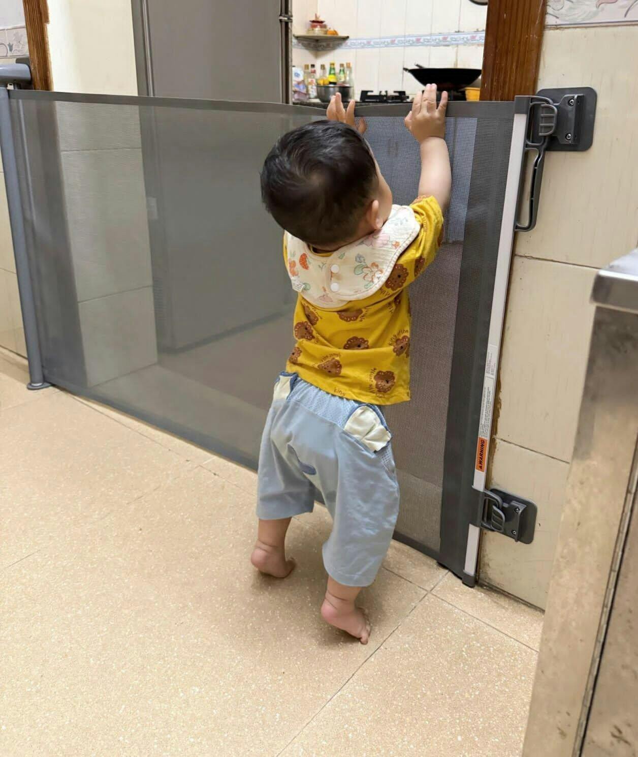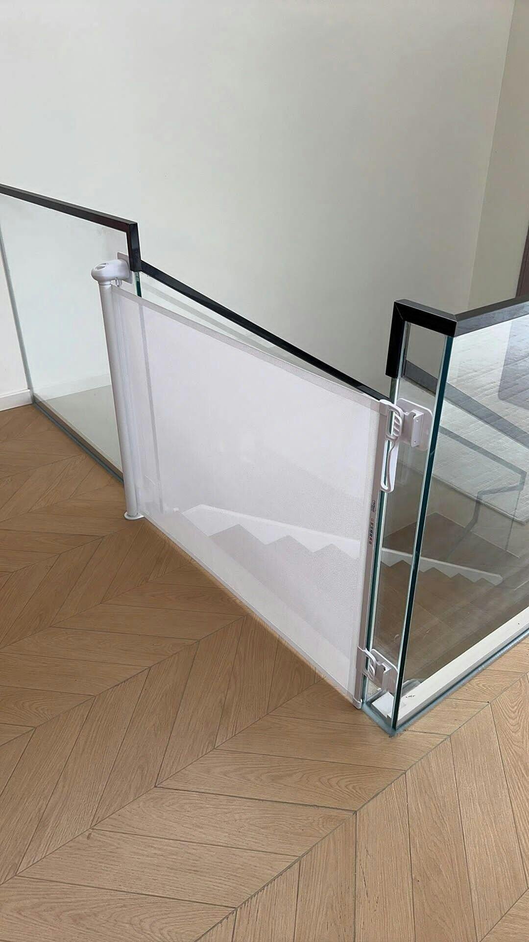 Retractable Safety Gate is a simple and effective way to protect your baby and home. Made of high-quality mesh, the retractable baby gate slides to fit openings up to 50” and stands 30” tall.